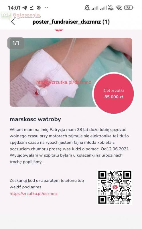 Witam bardzo potrzebna pomoc jestem chora osoba choruje już od 4 lat wiem że życie jest ciężkie ale dzięki waszej pomocy wygram i będę walczyć dalej jak narazie jest coraz gorzej choroba zaczęła postępować bardziej niż miałam myślałam że będę z tym bardzo długo żyć a okazuje się że bez leków nie da się wyłączyć już bardzo was proszę